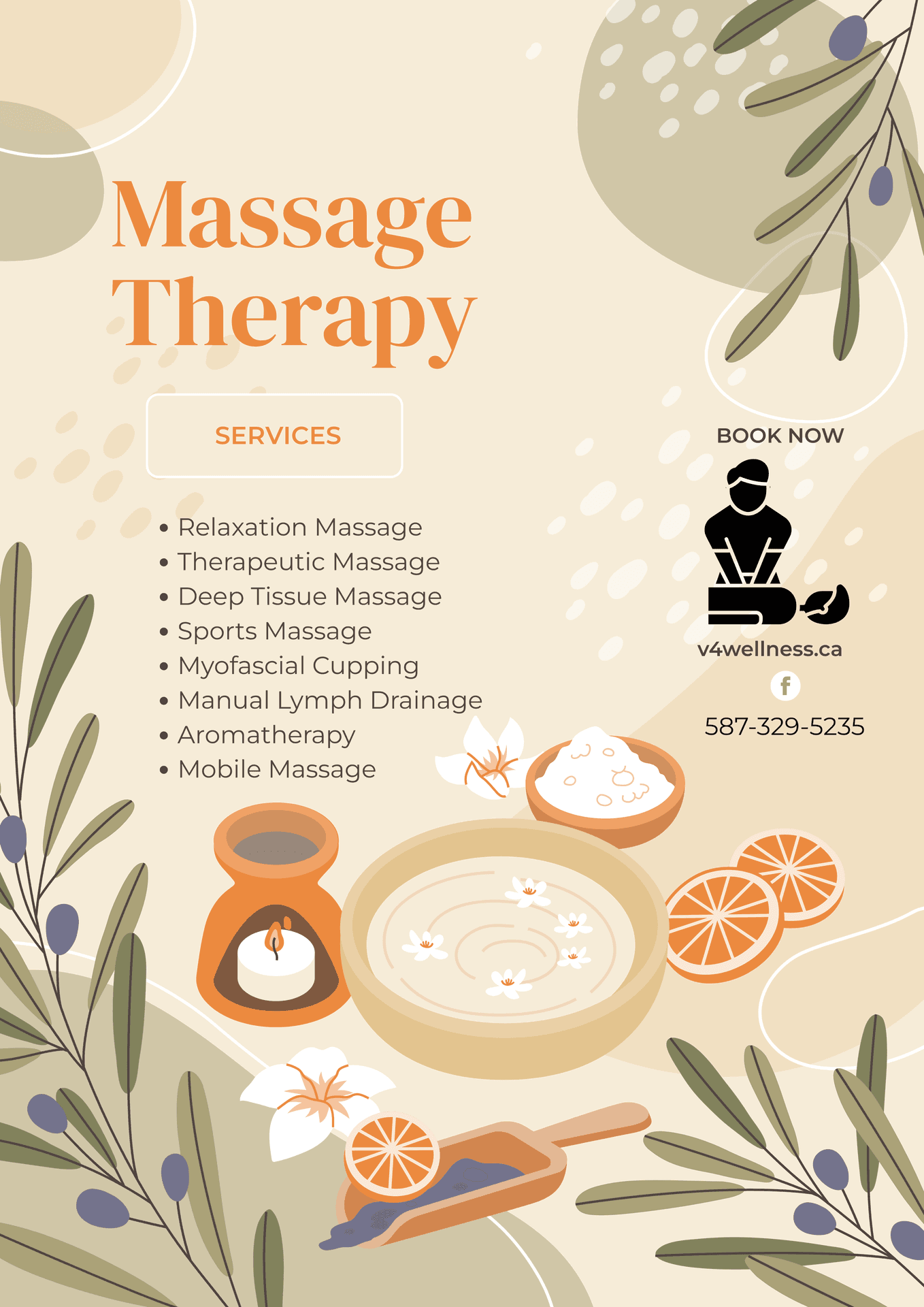 At V4WELLNESS, we provide professional massage therapy services in Calgary, AB. Our male massage therapist offers a range of treatments at a convenient location for you. Whether you need deep tissue, relaxation, cupping, assisted stretching, or sports massage, we tailor our sessions to meet your needs.